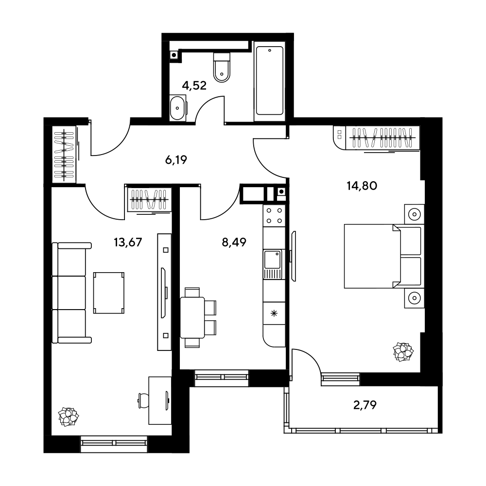 2-комнатная  47.44 м2