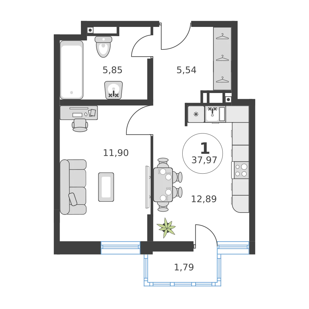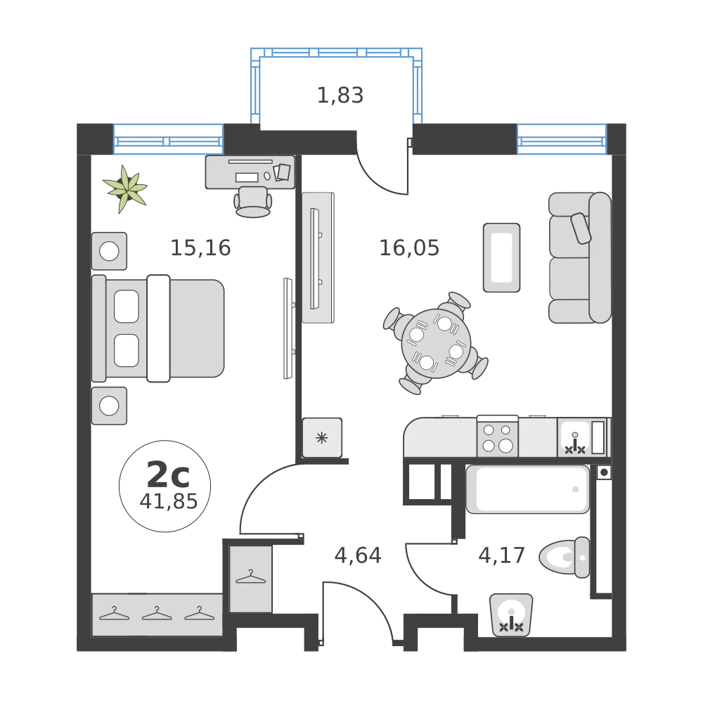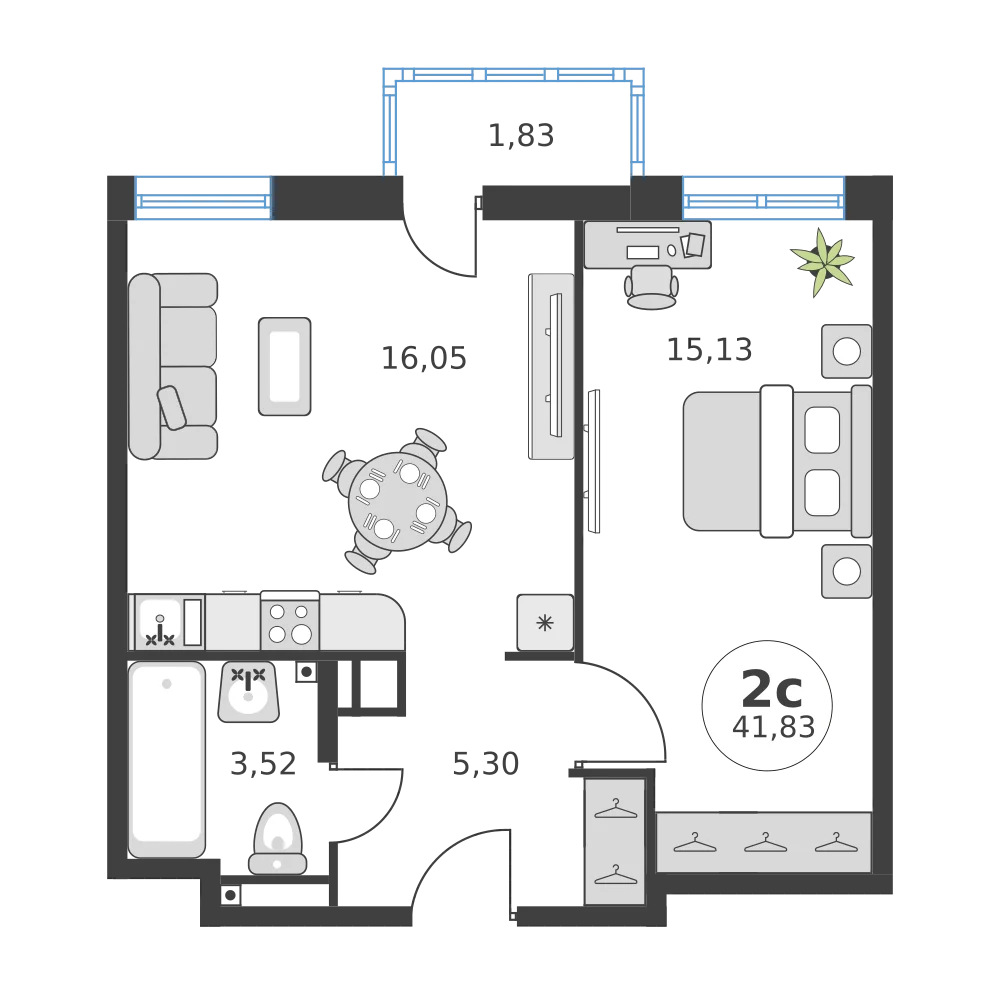 2-комнатная  41.83 м2