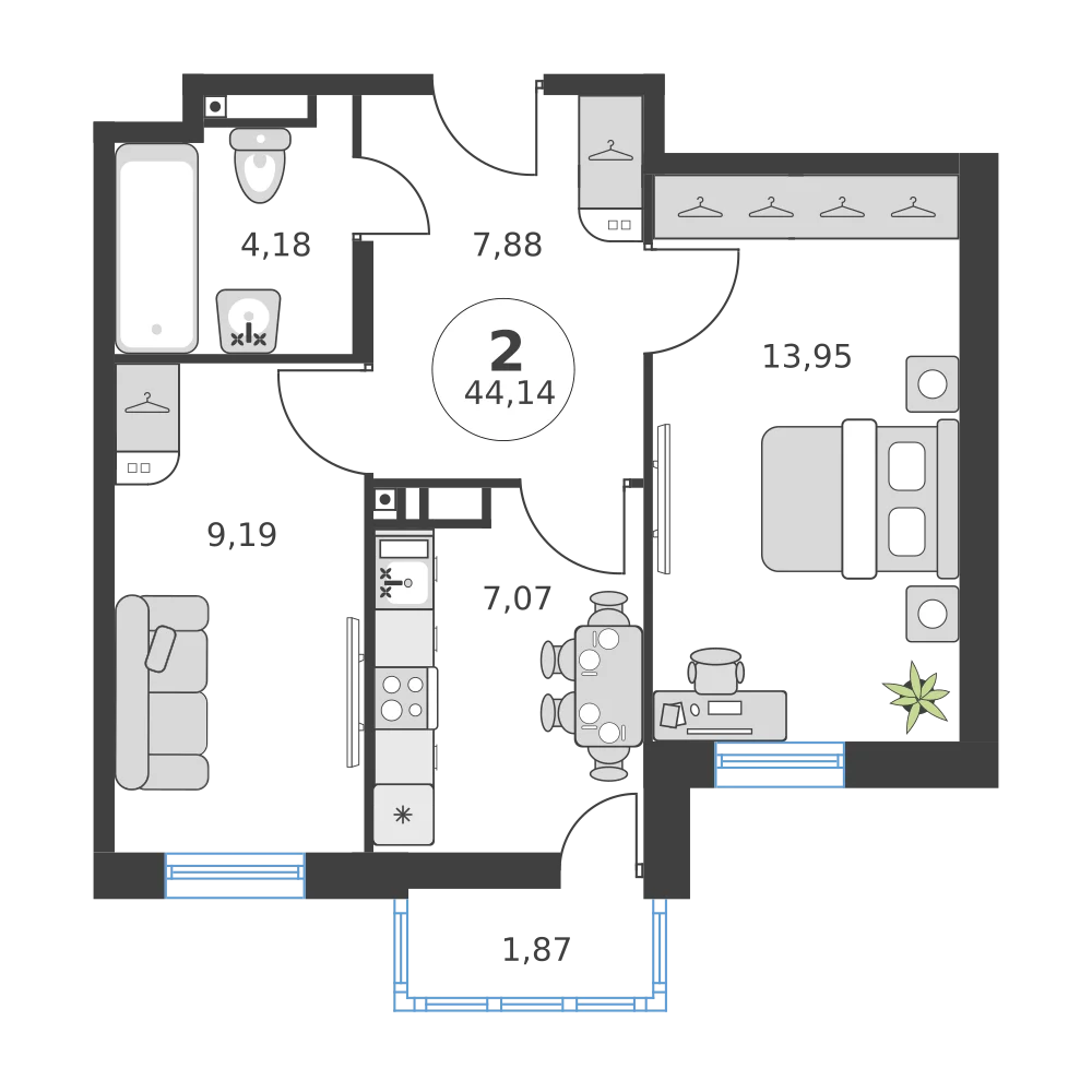 2-комнатная 41.83 м2