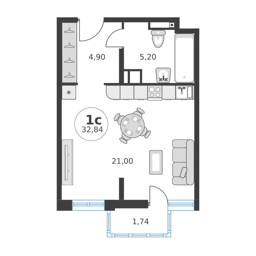 Студия  30.29 м2