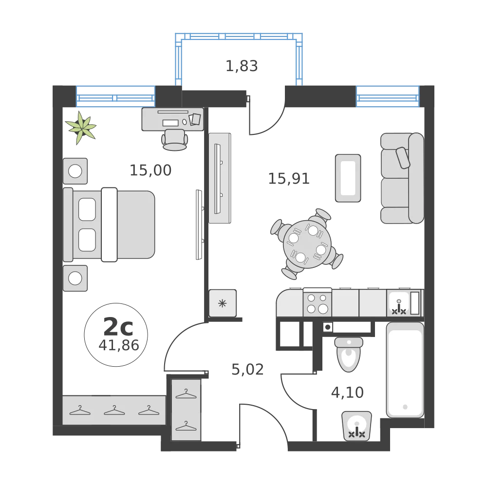 2-комнатная 44.06 м2