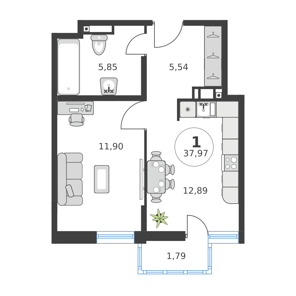 2-комнатная  42.02 м2